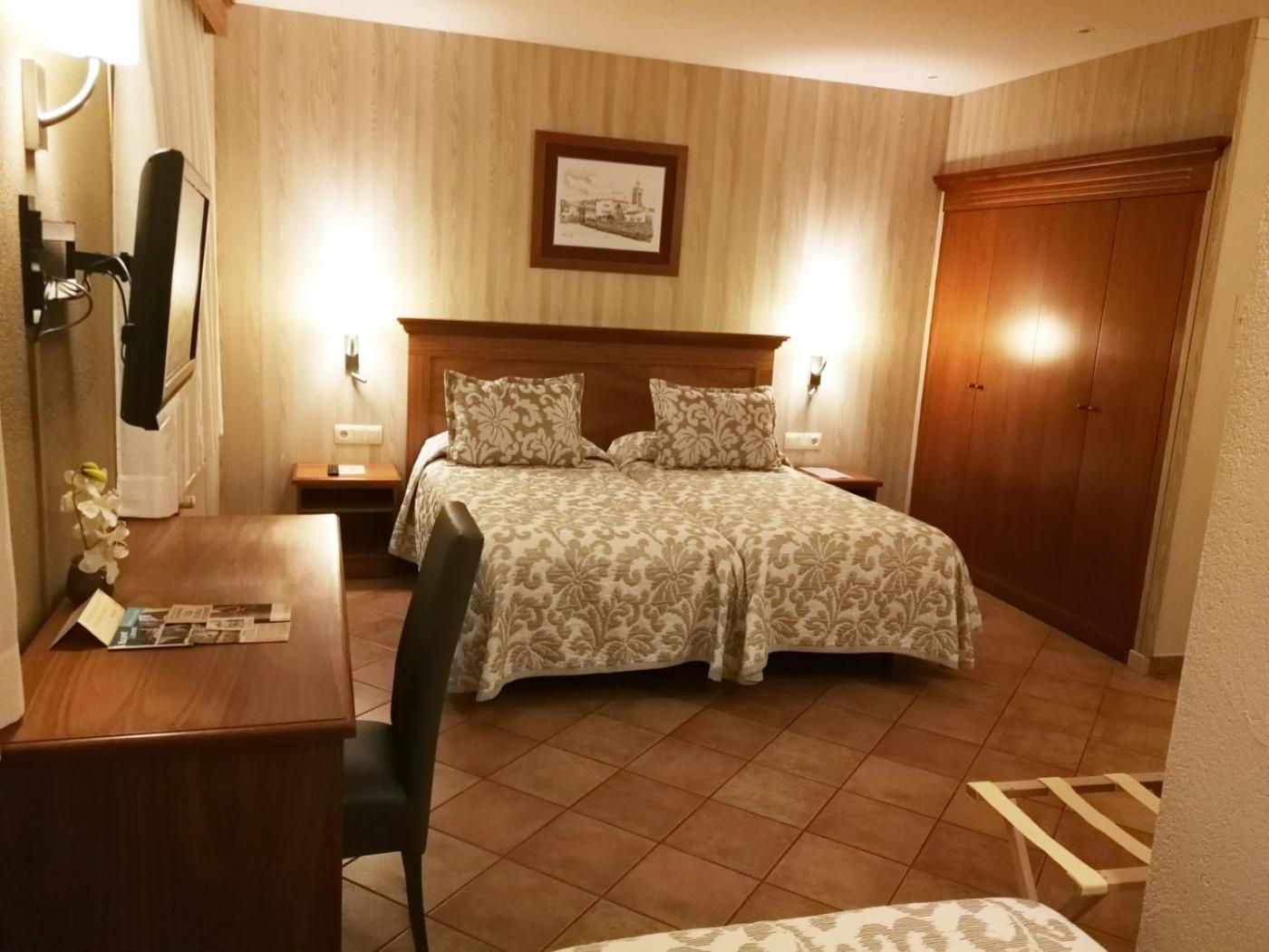 Habitación Doble - 1 o 2 camas. Esta habitación tiene aire acondicionado y 2 camas individuales que se pueden juntar. Incluye TV de pantalla plana vía satélite y vestidor. Se proporcionan artículos de aseo gratuitos y secador de pelo. Para acceder al aparcamiento hay que conducir por calles estrechas, por lo que es difícil acceder en minibuses o furgonetas. Sin embargo, la ciudad dispone de 2 aparcamientos públicos grandes y gratuitos para estos casos. ;