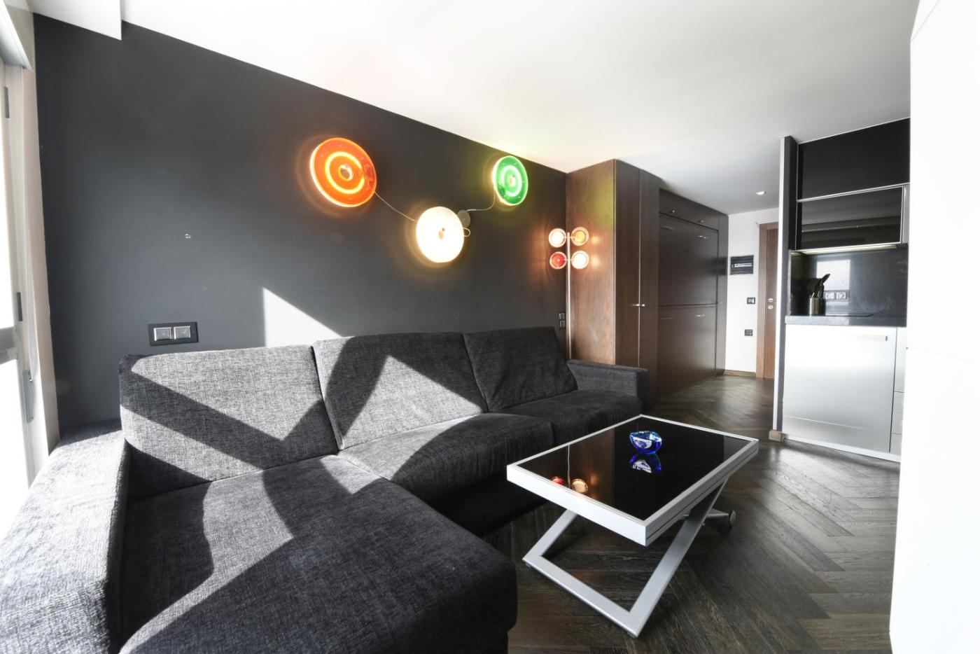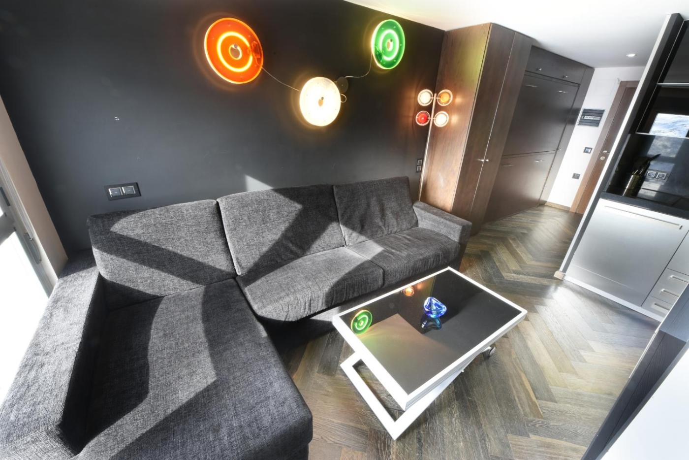 Loft. This apartment comprises 1 living room, 1 separate bedroom and 1 bathroom with a shower and a hairdryer. Guests can make meals in the kitchen that comes with a refrigerator, kitchenware, a microwave and a toaster. The apartment features parquet floors, a seating area with a flat-screen TV, a tea and coffee maker, a dining area as well as mountain views. The unit offers 3 beds.